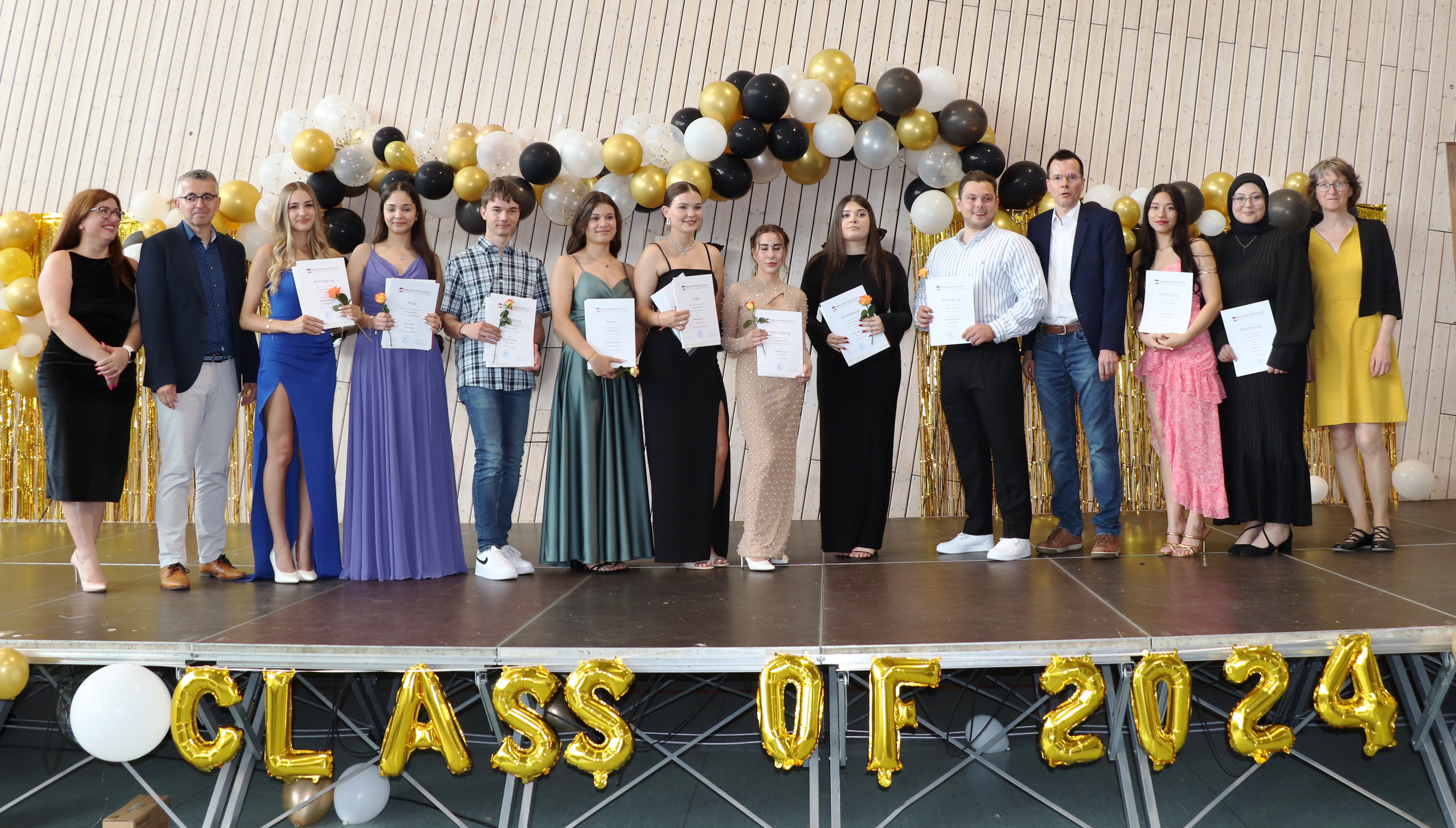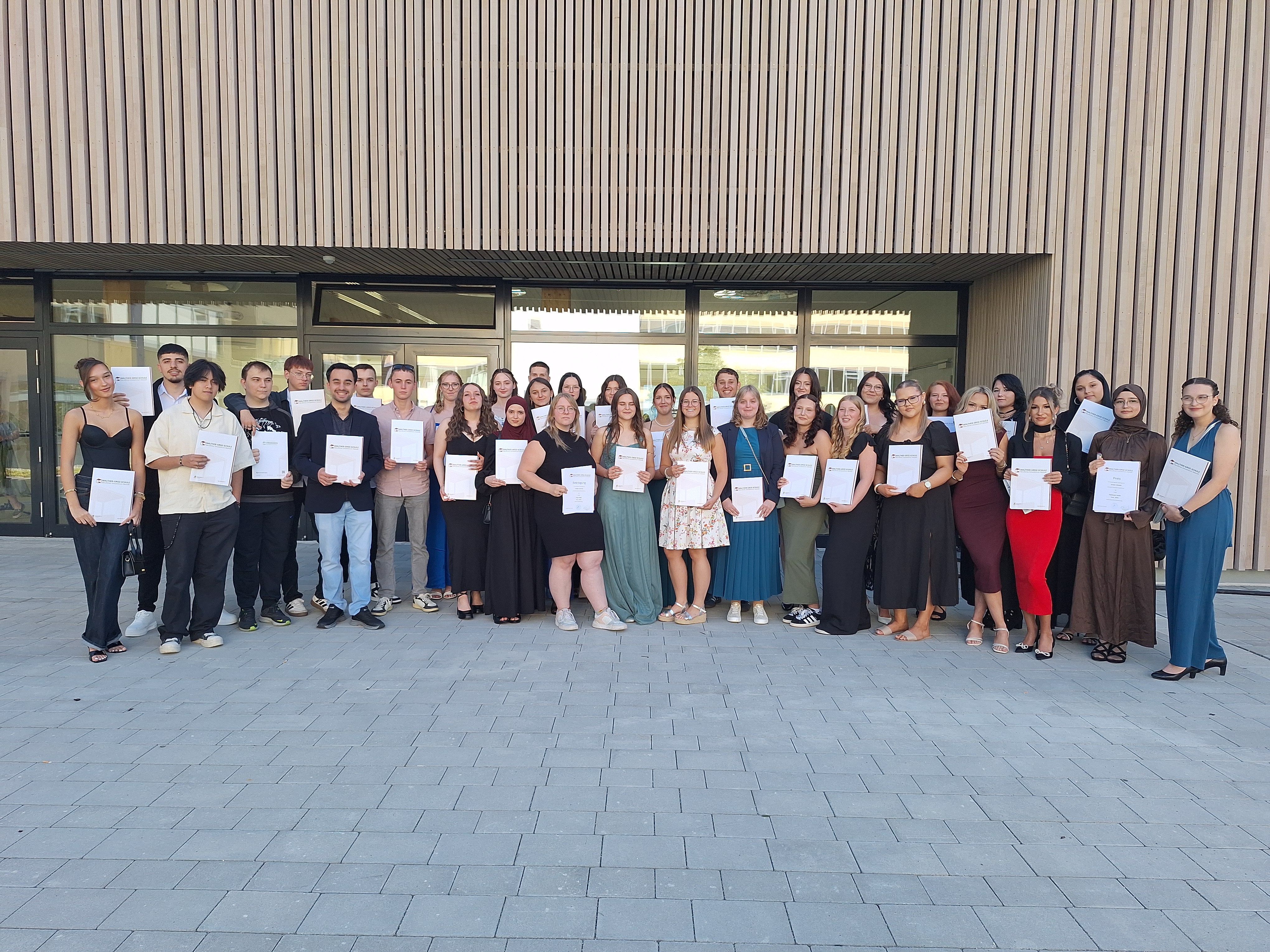 Insgesamt 109 Schülerinnen und Schüler erreichten die allgemeine Hochschulreife, 20 davon aus dem Internationalen Wirtschaftsgymnasium erhielten zudem das Zertifikat über das „Internationale Abitur Baden-Württemberg Fachrichtung Wirtschaft“. Mehr als ein Viertel des Jahrgangs hatte im Abiturschnitt eine „Eins“ vor dem Komma. Jahrgangsbeste war Sarah Felizia Klein mit dem Traumschnitt von 1,0.