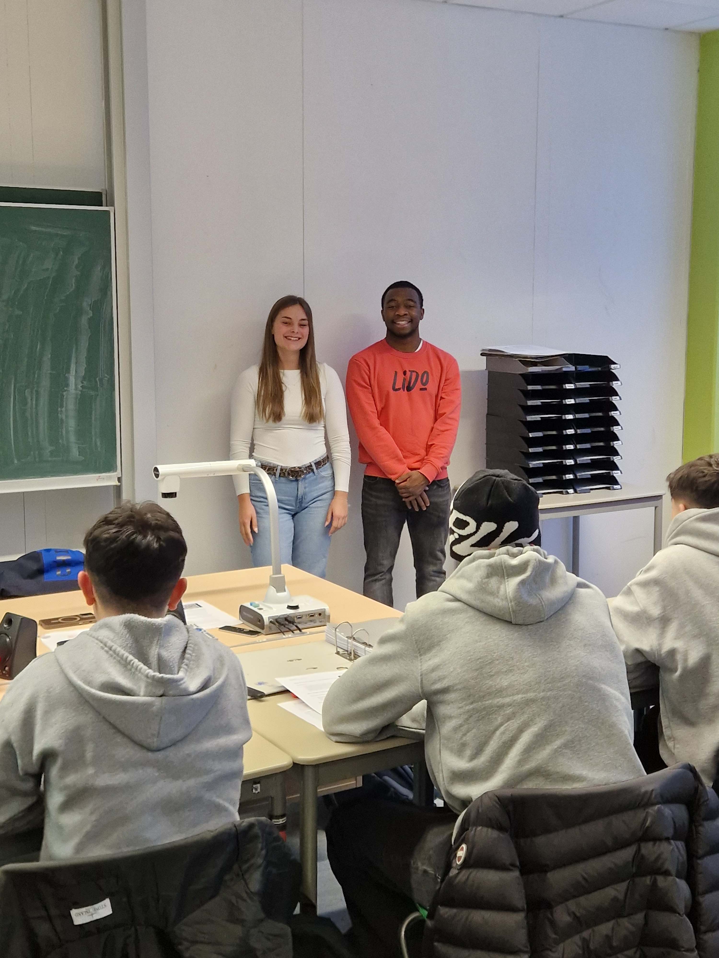 Am 15. Januar informierten Stella Albinger und Shacore Simon, beide Auszubildende zur Industriekauffrau/zum Industriekaufmann im zweiten Lehrjahr, und vor allem in ihrer Funktion als Ausbildungsbotschafter der IHK insgesamt rund 110 Schülerinnen und Schüler aus fünf Klassen.
