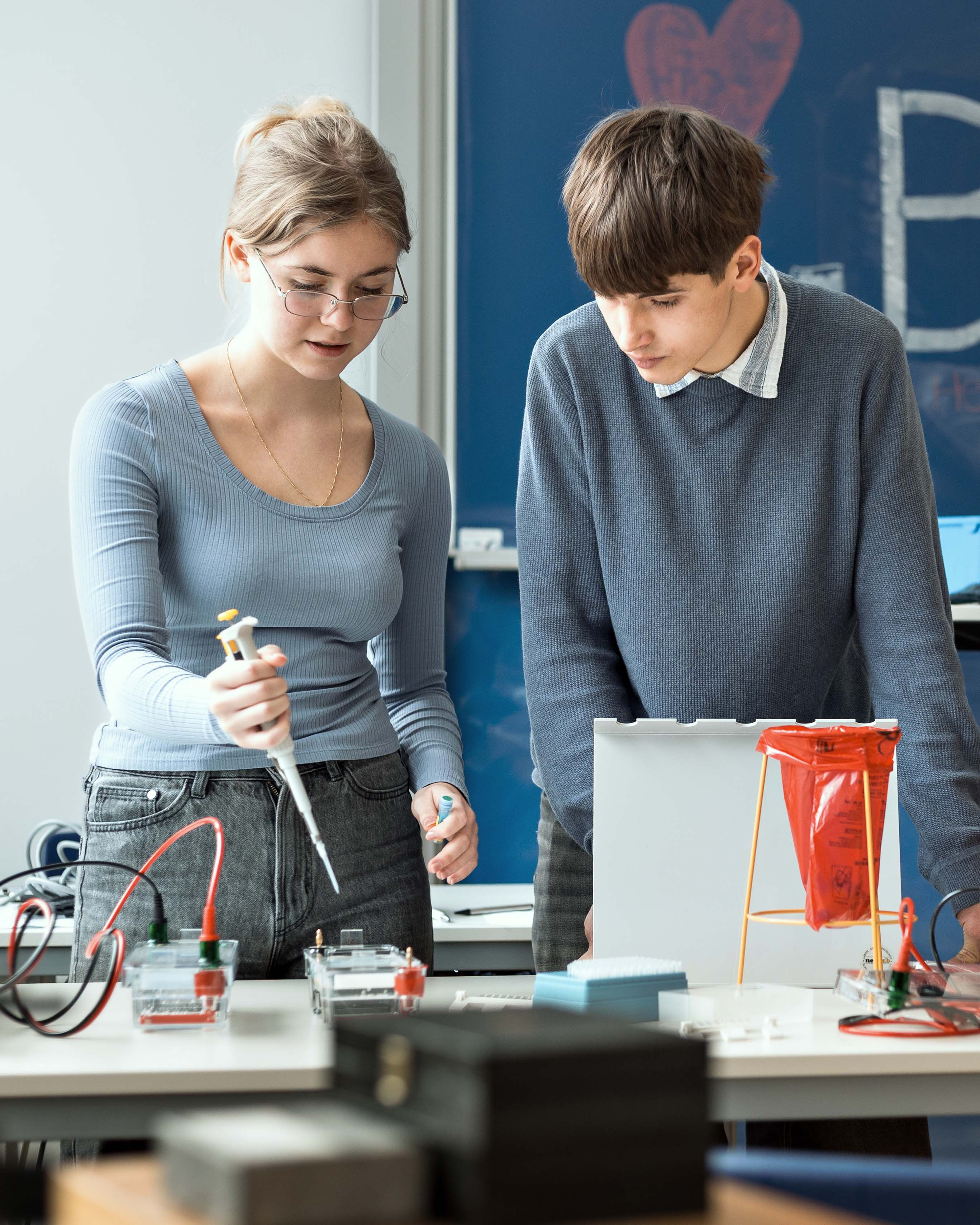 Sie interessieren sich für biologische und ethische Fragestellungen – etwa zur Stammzellforschung oder zur Züchtung transgener Nutzpflanzen? Sie möchten im Praktikum ausprobieren, wie Medikamente und andere biologische Produkte (z. B. Insulin) hergestellt werden und können sich vorstellen, später in der biochemischen Forschung oder Industrie tätig zu sein? Dann passt das Biotechnologische Gymnasium hervorragend zu Ihnen.