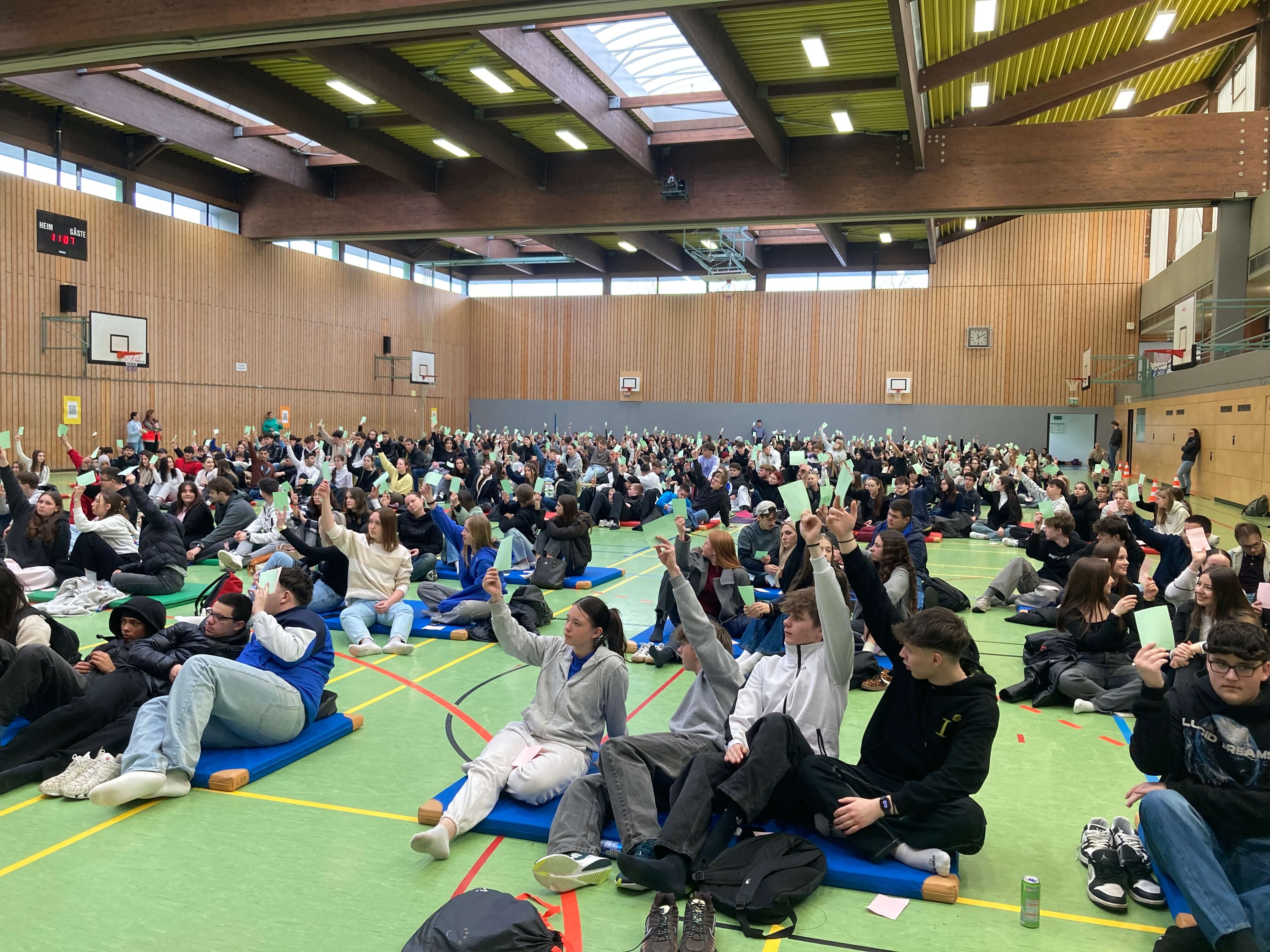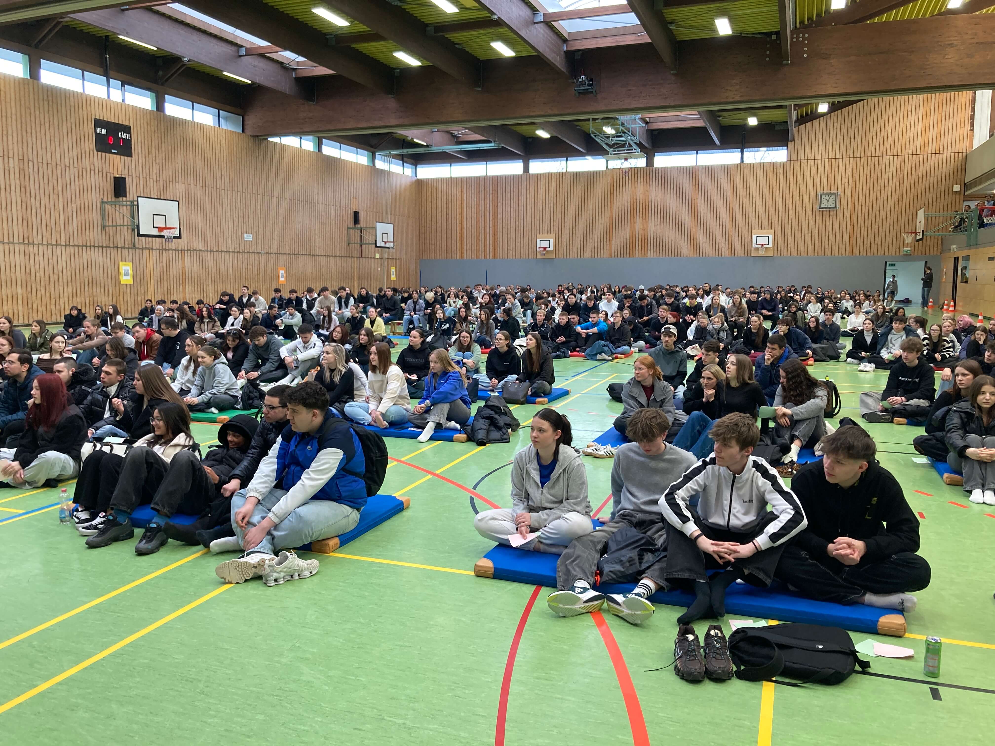 Am Mittwoch, den 26. März 2025, kurz vor 10 Uhr, strömten wahre Massen von Jugendlichen und junge Erwachsenen in die Kreissporthalle nahe dem beruflichen Schulzentrum in Albstadt. Mehr als 600 Teilnehmerinnen und Teilnehmer kamen zur ersten „Schüler/innen Vollversammlung“ der Walther Groz Schule in Ebingen.